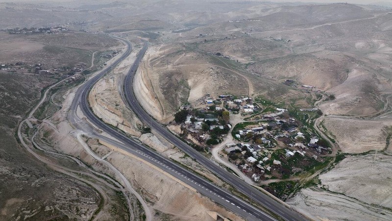 Pemandangan dusun Al-Khan Al-Ahmar di Tepi Barat, Selasa (24/1/2023).