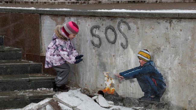 Mural Setop Perang Hiasi Sisa-sisa Gempuran Rusia di Ukraina