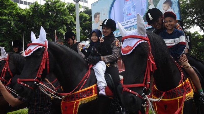 Polisi Berkuda Hibur Warga Saat Hari Bebas Kendaraan Bermotor di HI