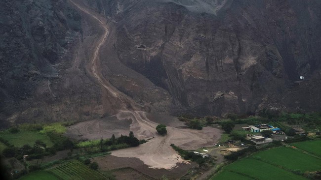 Peru - Sebuah perbukitan di Arequipa, Peru, longsor akibat hujan deras. Begini kondisnya.