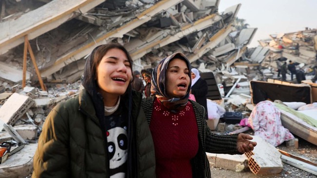 Turki - Isak tangis terus terdengar di Kota Hatay, Turki, sesaat gempa dahsyat mengguncang wilayah tersebut. Mereka hanya bisa menatap puing-puing rumah yang hancur.