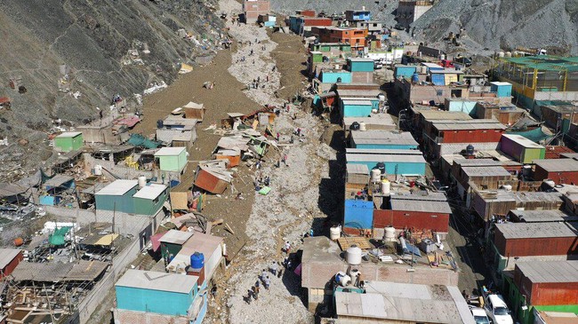 Peru - Longsor akibat hujan deras menghancurkan puluhan rumah warga di Camana, Peru. Dilaporkan sedikitnya 15 orang tewas dalam longsor ini.