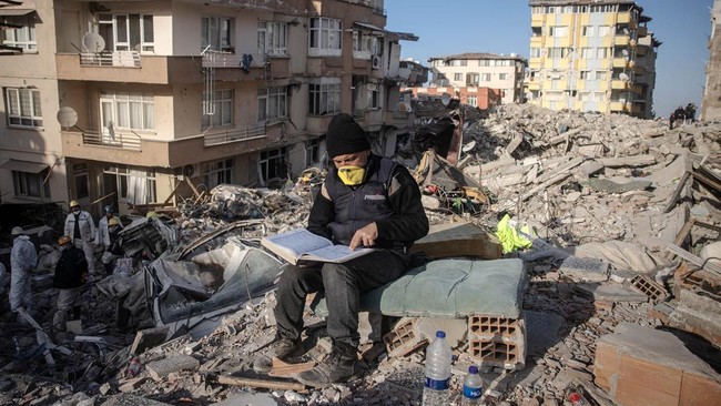 Turki - Pencarian korban gempa terus dilakukan di Turki, Rabu (15/2) waktu setempat. Bahkan di Hatay, pencarian korban dengan diiringi lantunan ayat-ayat suci Al-Qur'an
