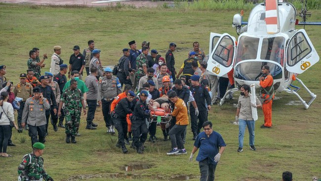 Jambi - Hingga Selasa sore, tim gabungan TNI, Polri dan Basarnas berhasil mengevakuasi empat korban kecelakaan helikopter melalui udara. Ini foto-foto terkininya.