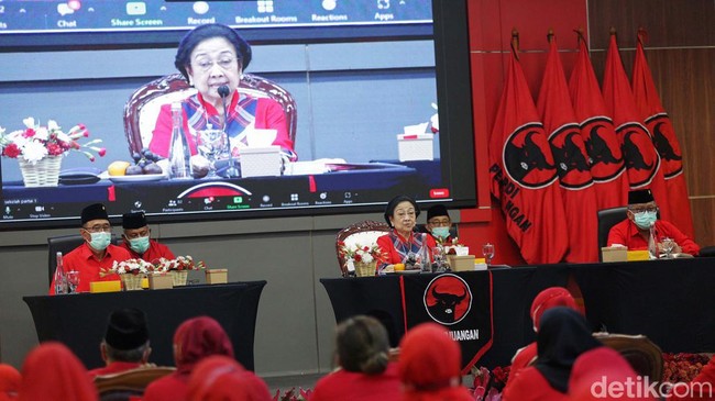 Jakarta - Ketum PDIP Megawati Soekarnoputri membuka acara Pendidikan Kader Perempuan Tingkat Nasional Tahun 2023. Pendidikan kaderisasi itu diikuti 100 peserta.