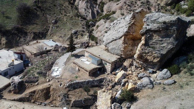 Penampakan Batu Besar di Turki yang Terbelah Dua Imbas Gempa