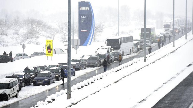 Kroasia - Ratusan orang di Kroasia terpaksa menghabiskan malam di mobil. Hal itu terjadi setelah badai salju membuat macet dan beberapa bagian negara terputus.
