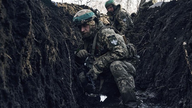 Ukraina - Pasukan Ukraina menggunakan taktik perang parit untuk melawan Rusia di Bakhmut, Minggu (5/3/2023). Begini situasi parit yang menjadi benteng pertahanan Ukraina.