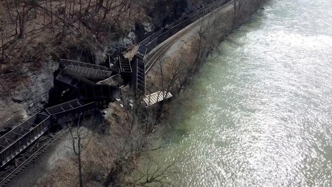 Penampakan Kereta Barang Tergelincir di Tebing AS