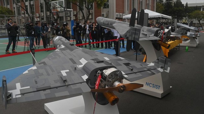 Taiwan - Kementerian Pertahanan Taiwan memamerkan sejumlah drone militer buatan lokal. Keberadaan pesawat tak berawak itu untuk mengantisipasi ketegangan dengan China.