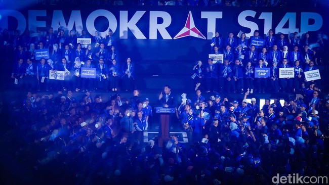 Potret AHY Beri Pidato Politik, Kader Demokrat Menyemut