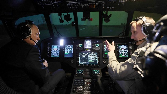 Gaya Putin Jadi 'Pilot' di Pabrik Helikopter Rusia