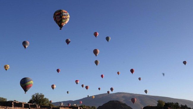 Meksiko - Warga Meksiko menikmati matahari musim semi. Mereka mengunjungi zona arkeologi sambil menerbangkan balon udara selama perayaan ekuinoks musim semi.