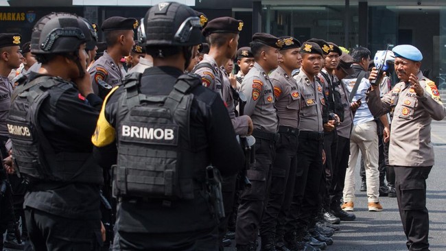 Personel TNI dan Polri mengikuti apel pasukan di Polrestabes Surabaya, Jawa Timur, Rabu (22/3/2023).
