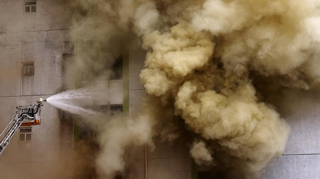Hong Kong - Kebakaran melanda gudang di distrik Kowloon, Hong Kong, Jumat (24/3/2023) waktu setempat. Belum diketahui penyebab kebakaran tersebut.