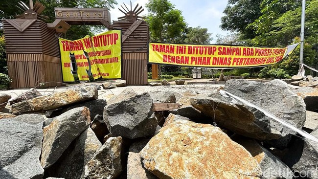 Jakarta - Taman Gantara di Jalan Haji Raya, Radio Dalam, Jakarta Selatan, ditutup. Penutupan dilakukan oleh warga karena adanya sengketa lahan.