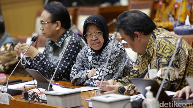 Jakarta - Mensos Tri Rismaharini menghadiri Rapat Kerja dengan Komisi VIII DPR, Selasa (28/3/23). Rapat itu membahas pelaksanaan program dan anggaran Tahun 2023 Kemensos.
