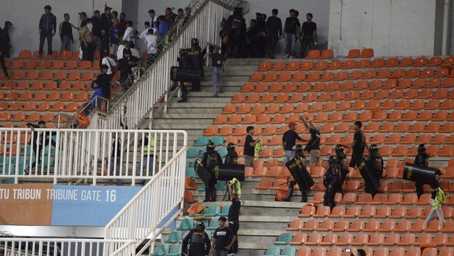 Potret Kericuhan Suporter di Stadion Pakansari Bogor