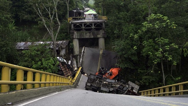 Kolombia - Sebuah jembatan di Valle del Cauca, Kolombia runtuh. Insiden ini menyebabkan dua orang tewas dan 15 orang lainnya luka-luka.