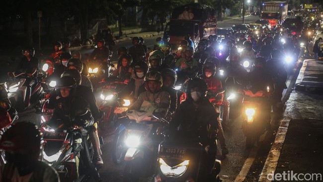 Bekasi - Jalur Pantura wilayah Tambun, Bekasi, mulai dipadati pemudik, Selasa (18/4/2023) malam. Kendaraan roda dua mendominasi jalur tersebut.