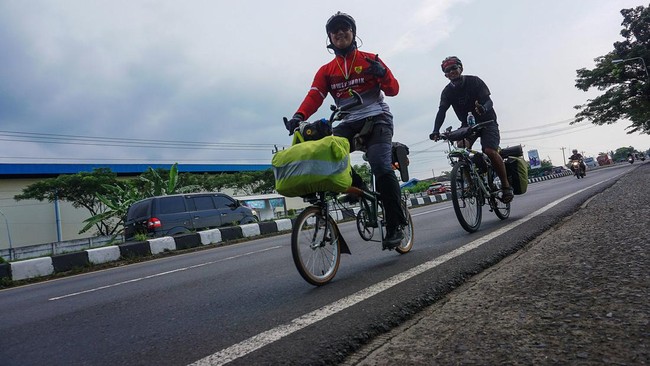 Jawa Tengah - Ketel Iman dan Risky Hanafid memilih mudik menggunakan sepeda menuju kampung halaman di Jawa Tengah. Mereka berangkat mudik sejak Minggu (16/4/2023) lalu.