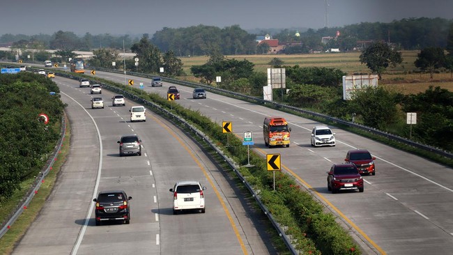 Jawa Timur - H-2 Lebaran, arus mudik di Tol Jombang-Mojokerto ramai lancar, Kamis (20/4/2023). Arus lalu lintas yang lancar itu terpantau di kedua arah.