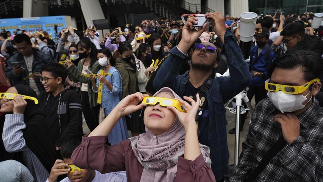 Jakarta - Gerhana matahari hibrida tahun ini dapat dilihat di 34 provinsi di Indonesia, termasuk Jakarta. Fenomena alam ini mengundang antusiasme warga Ibu Kota.