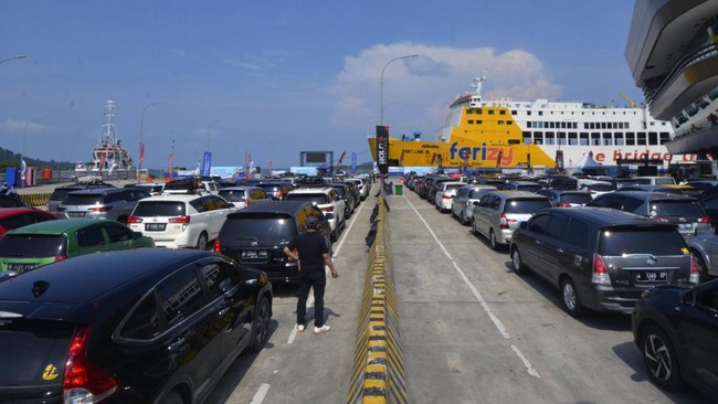 Lampung - H+4 lebaran, pelabuhan Bakauheni mulai dipadati pemudik yang hendak balik ke pulau Jawa. Begini situasinya.