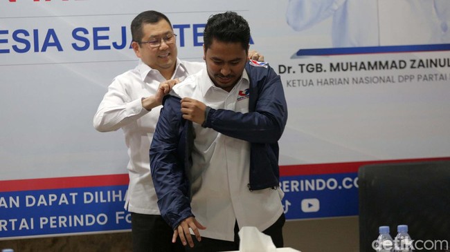 Jakarta - Ketum Perindo Hary Tanoesoedibjo melantik 2 kader barunya. Mereka adalah eks kader PSI Michael Victor Sianipar dan putra Wamen Agama, Najmi Mumtaza Rabbany.