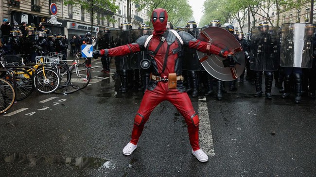 Wow! 'Deadpool' Ikut Aksi May Day di Paris