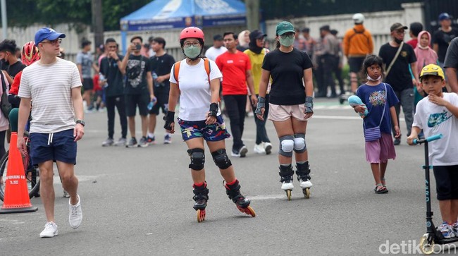 Jakarta - Hari bebas kendaraan bermotor (HBKB) atau car free day (CFD) kembali digelar di Bundaran HI, Jakarta, seusai libur Lebaran, Minggu (7/5). Begini suasananya.