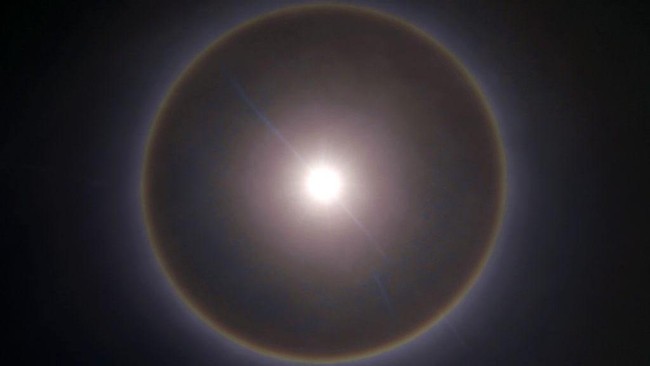 Fenomena halo matahari terlihat di langit Hubei, China, Senin (15/5/2023). Liu Shanghua/VCG via Getty Images.