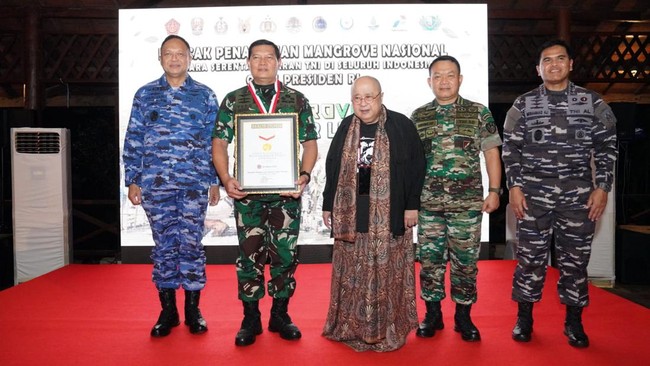 Jakarta - Mabes TNI menanam 1.169.000 bibit Mangrove secara serentak di 370 lokasi Indonesia. Kegiatan itu mendapatkan apresiasi dari Museum Rekor Indonesia (Muri).