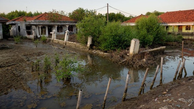 Bekasi - Rumah hingga pemakaman umum yang ada di garis pantai utara Jawa Barat mulai terancam abrasi. Begini penampakannya.