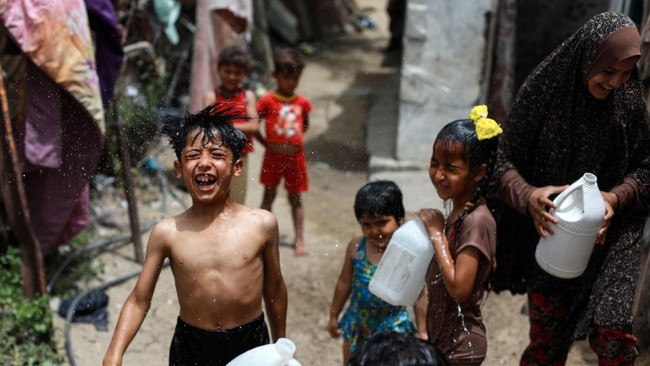 Gelombang Panas Melanda, Anak-anak di Gaza Sampai Mandi di Depan Rumah