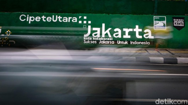 Jakarta - Slogan 'Kota Kolaborasi' era Anies Baswedan berganti pada mural di Jalan Fatmawati Raya, Jaksel. Slogan terkini adalah 'Sukses Jakarta untuk Indonesia'.