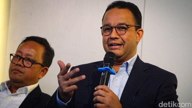 Jakarta - Anies Baswedan merespon isu usai Presiden Jokowi bilang akan cawe-cawe demi bangsa dan negara termasuk soal Pemilu 2024. Anies didampingi anggota Tim Delapan.