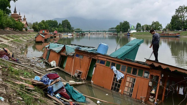 Penampakan Tenggelamnya Rumah Perahu di Kashmir