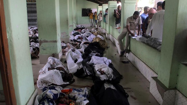 Penampakan sejumlah jenazah yang tergeletak di salah satu ruang terbuka di sekolahan setempat, India, Minggu (4/6/2023).