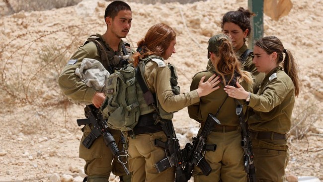 Seorang tentara bereaksi di dekat lokasi insiden keamanan yang dilaporkan di dekat perbatasan selatan Israel dengan Mesir, Israel. Ini adalah kejadian langka dari kekerasan mematikan di sepanjang perbatasan. Dilansir AP News, Sabtu (3/6/2023), Israel mengatakan penjaga perbatasan Mesir menyeberang ke Israel dan membunuh ketiga tentara itu sebelum dia ditembak mati oleh pasukan. Mesir mengatakan dia mengejar penyelundup narkoba ketika dia memasuki Israel. REUTERS/Amir Cohen
