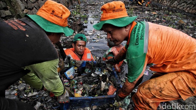 Jakarta - Banyak sampah yang menumpuk proyek sodetan Kali Tegal Amba yang berada di kawasan Kampung Sumur, Klender. Kini, sampah-sampah tersebut mulai dibersihkan.