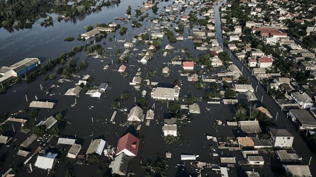Penampakan dari Udara Banjir Akibat Jebolnya Bendungan di Ukraina