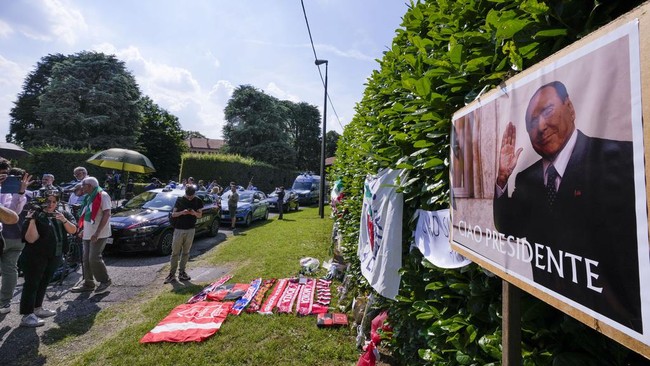 Eks PM Italia Silvio Berlusconi Meninggal, Karangan Bunga Hiasi Rumah Duka
