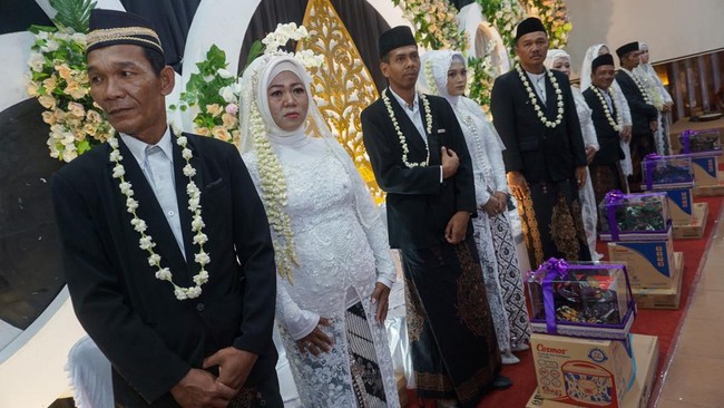 Pekalongan - Pemerintah Kota Pekalongan memfasilitasi 10 pasang nikah siri mengikuti nikah massal. Nikah massal ini dalam rangka peringatan Hari Keluarga Nasional 2023.