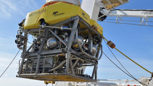 Sebuah robot Prancis yang dapat menyelam hingga kedalaman 20.000 kaki (6.000 meter) di bawah air sedang dalam perjalanan untuk membantu menemukan kapal selam turis yang menghilang saat turun ke bangkai kapal Titanic. Stephane Lesbats/Ifremer/CCBY/REUTERS