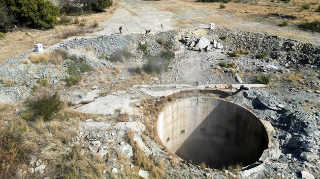 Pemandangan lubang tambang yang terbengkalai di Virginia, dekat Welkom, Afrika Selatan, Senin (26/6/2023).