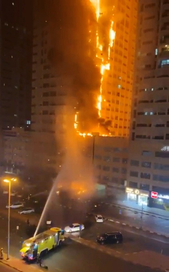 Jakarta - Kebakaran melanda gedung apartemen di Ajman, United Arab Emirates, Selasa (27/6). Api berkobar dahsyat.