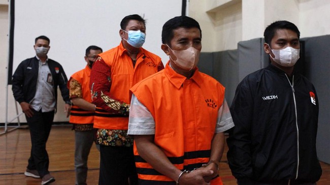 Kepala Badan Kesatuan Bangsa dan Politik (BKPP) Bambang Haryono, Kepala Dinas Lingkungan Hidup (Kadis LH) Raharjo, dan Kepala Dinas Perumahan dan Kawasan Permukiman (Kadis PKP) Moh Ramdon ditahan usai menjalani pemeriksaan di Gedung Merah Putih KPK Jakarta, Selasa (27/6/2023).