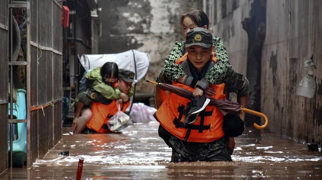 Setidaknya 15 orang tewas dalam beberapa hari terakhir dan empat orang hilang setelah banjir parah yang disebabkan oleh hujan lebat melanda kotamadya Chongqing di China, menurut laporan kantor berita Xinhua, Rabu (5/7/2023). Banjir Chongqing tampaknya menjadi yang paling mematikan di China di tengah banjir di bagian lain negara itu. Puluhan ribu orang telah dievakuasi. AP/Li Yuyang
