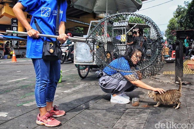 Jakarta - Komunitas Let's Adopt Indonesia menangkap kucing-kucing liar di Stasiun Gondangdia, Jakarta, Sabtu (8/7). Tujuannya untuk disterilisasi dan vaksinasi rabies.